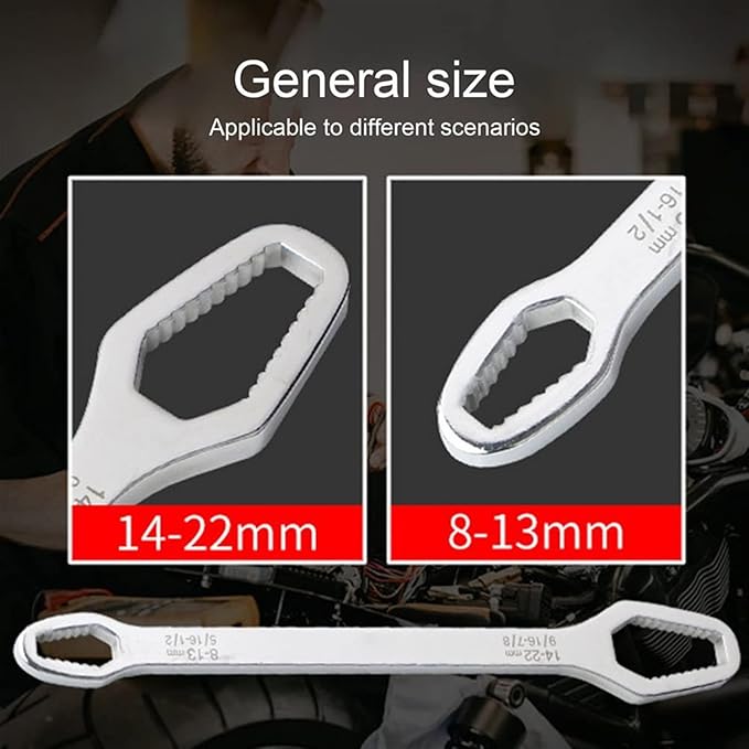 - Adjustable All-purpose wrenches: All-purpose wrenches are suitable for both standard 5/16 inch to 7/8 inch and metric 8mm to 22mm nuts and bolts; the size can be adjusted by moving.