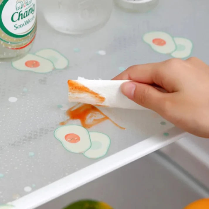 The liner can be easily cut to fit any shelf or drawer size. No glue needed—just place it and use. When dirty, simply wipe with a damp cloth or wash with water for hassle-free maintenance.