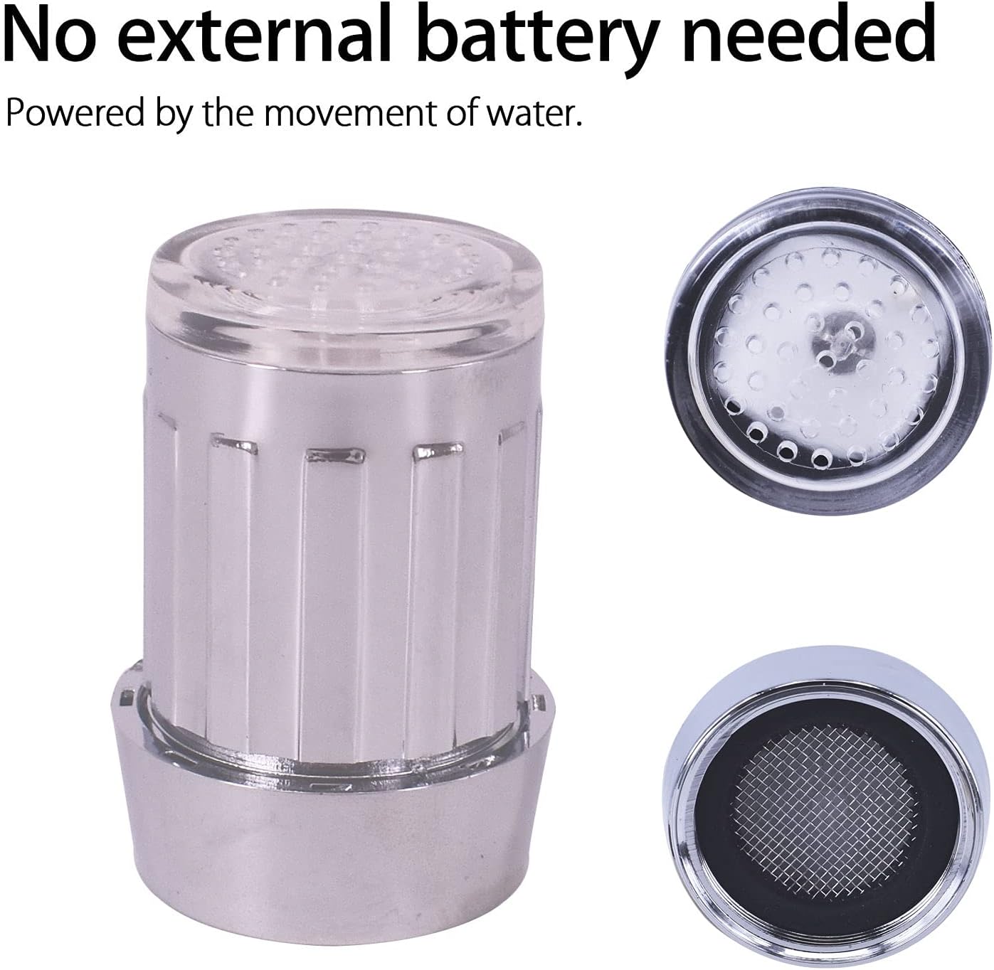 The LED lights are powered by the water flow itself, making it an eco-friendly and energy-saving solution.