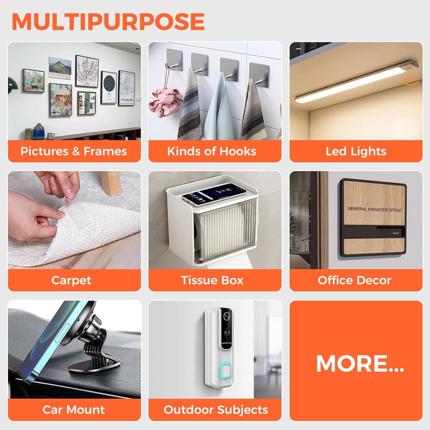 This powerful, reusable gel tape sticks to almost any surface — wood, glass, metal, plastic, or ceramic — making it perfect for home, office, and car use.