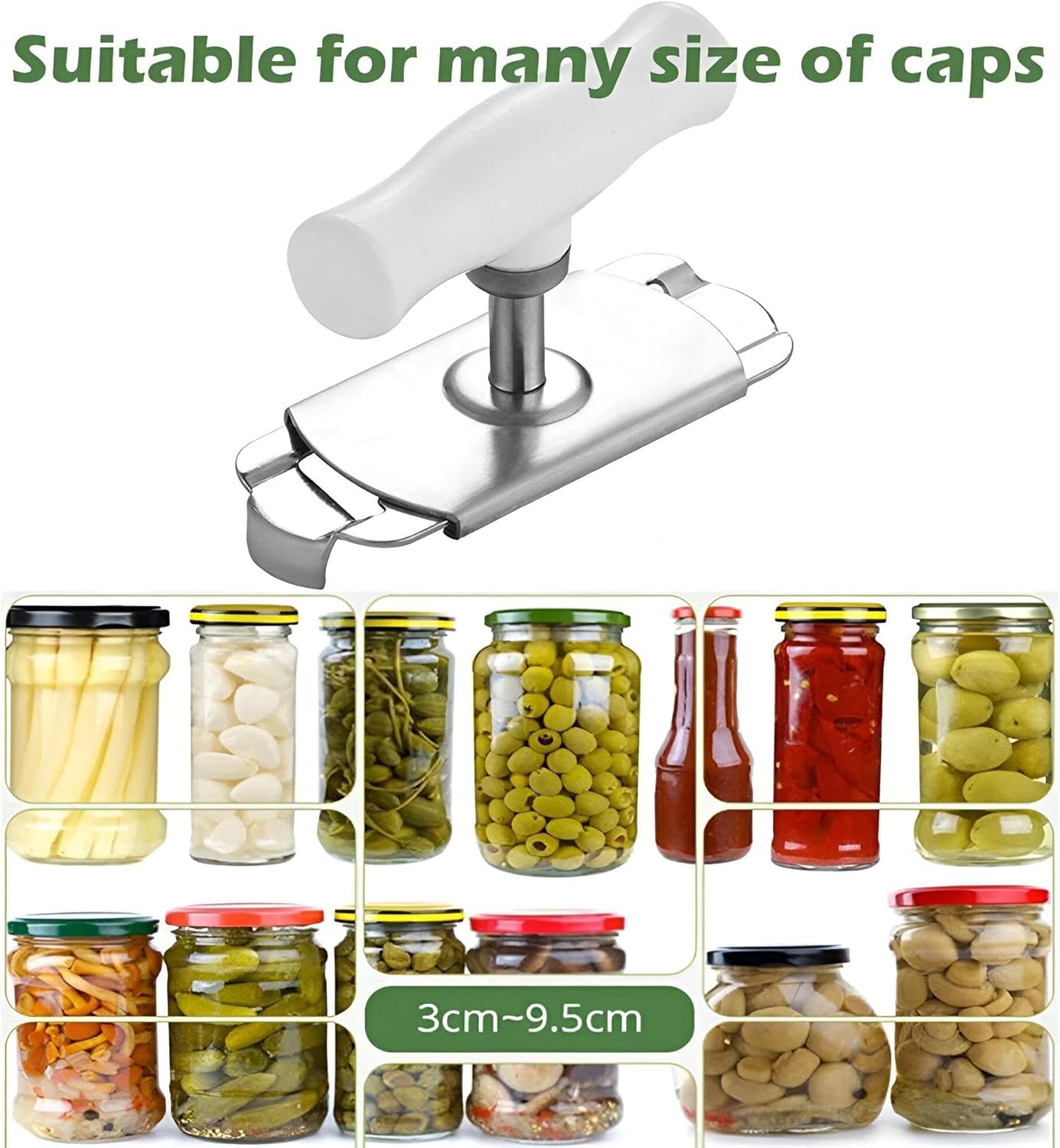 - Adjustable Range: Suitable for most jar & bottle lids