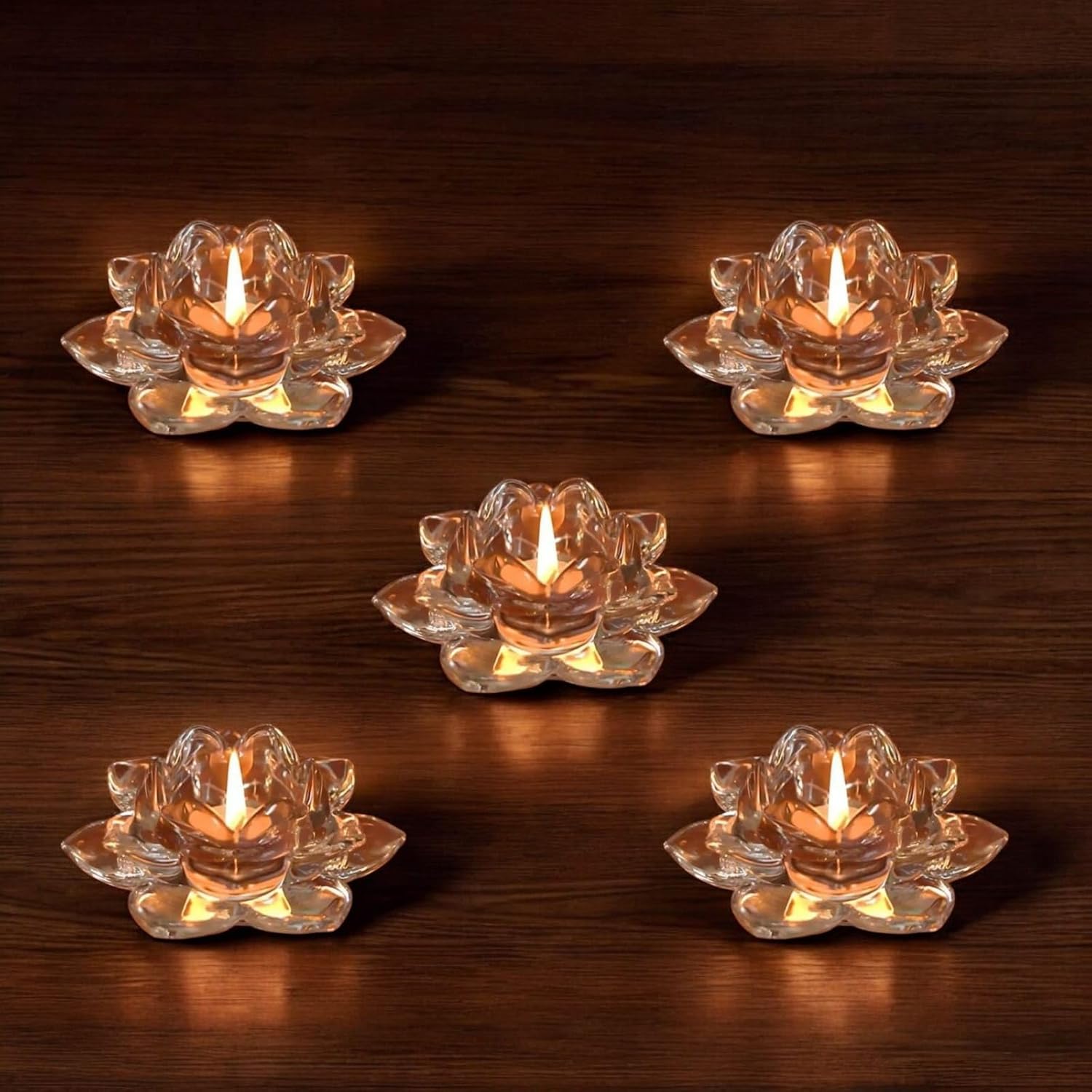 🌸 Enhances Ambience – Creates a soothing and peaceful glow, perfect for meditation, puja, or relaxation.✨ Symbol of Purity & Positivity – The lotus is a sacred symbol that brings spiritual calmness and positive energy.🕯️ Beautiful Light Reflection – Glass petals reflect candlelight, making your space look elegant and divine.🎉 Ideal for Décor & Festivals – Perfect for Diwali, weddings, or as a centerpiece in your home.💎 Durable & Premium Quality – Made from high-quality glass, long-lasting and easy to clean.🎁 Perfect Gifting Option – A thoughtful gift for housewarmings, festive occasions, or spiritual ceremonies.