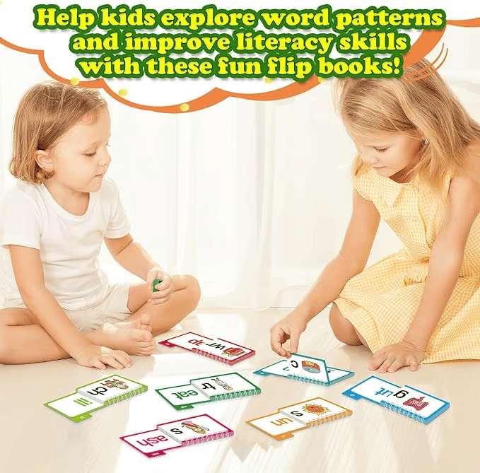 Each flip book functions as a set of word family flash cards, providing a hands-on, engaging way for toddlers to practice phonics while enhancing vocabulary and early literacy.